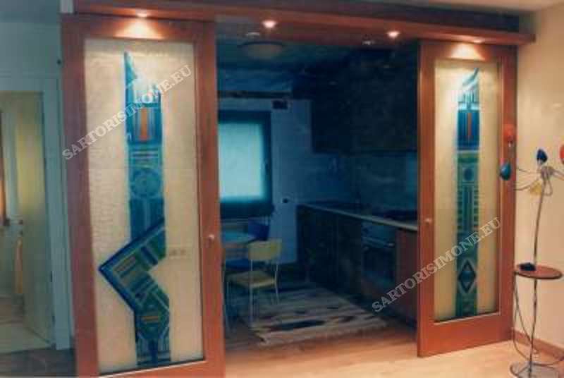 Vetrata artistica realizzata in collaborazione di Mariano Carrara. Giochi geometrici e di colori